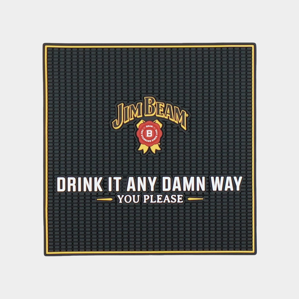 Keep your bar clean and your cocktails steady with the Jim Beam “Drink It Any Damn Way” Bar Mat. Made from durable PVC, this square rail mat provides a non-slip surface for mixing drinks and holding bar tools, while showing off your bold Jim Beam style.