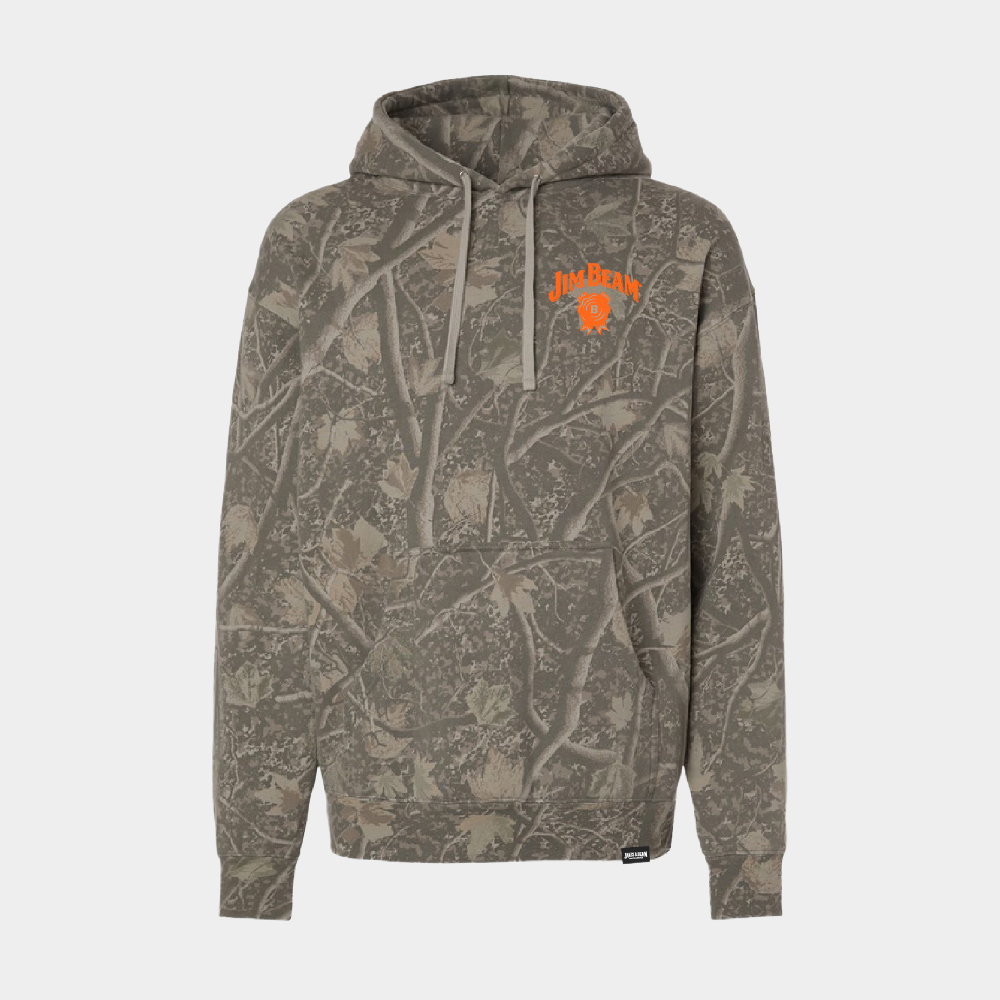 Blend in while standing out. The Jim Beam Camo Hoodie brings a rugged outdoor vibe with a bold pop of color. Soft, warm, and built for everyday wear — whether you’re on the trail, at the tailgate, or kicking back with good company.